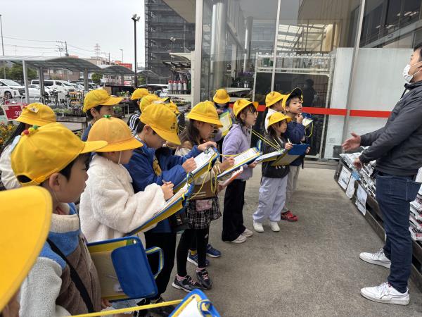 生活科『まちたんけん』の単元で学校の周りにはどんなお店や施設があるか学習しました。2回目のまちたんけんでは、グループごとに分かれ、お店や施設の中を見学し働いている人にお話を聞いてきました。たくさん質問もし、働く人たち、お店や施設について学ぶことができました。