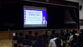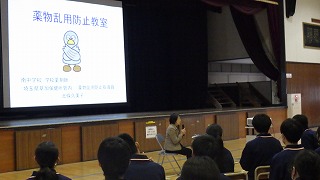 学校薬剤師の北條先生来校していただき、薬物乱用防止教室を行いました。
