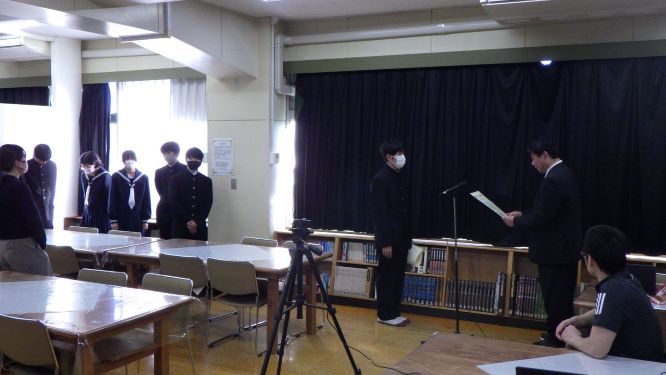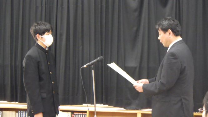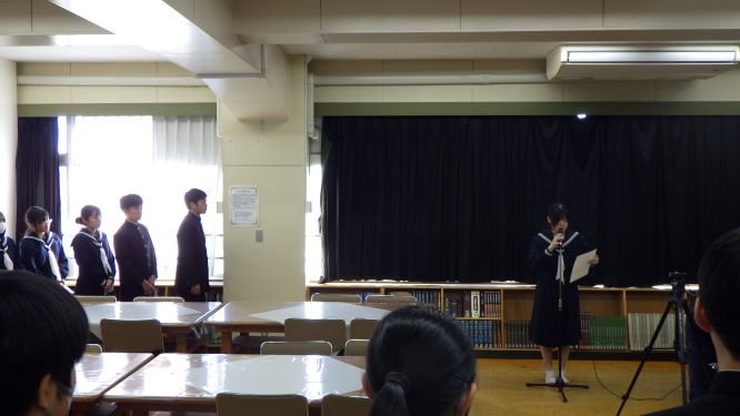 表彰の後は、合同音楽会に参加した3年3組の代表の生徒が感想を発表してくれました。