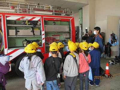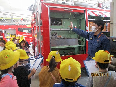 消防署では、消防車の仕組みや消防署員の仕事について学びました。
