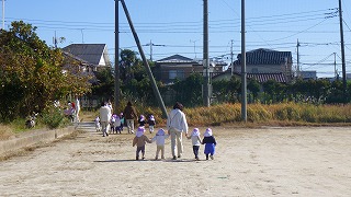 近隣の幼稚園の子供たちが、南中学校の校庭を使用してピクニックに来ました。