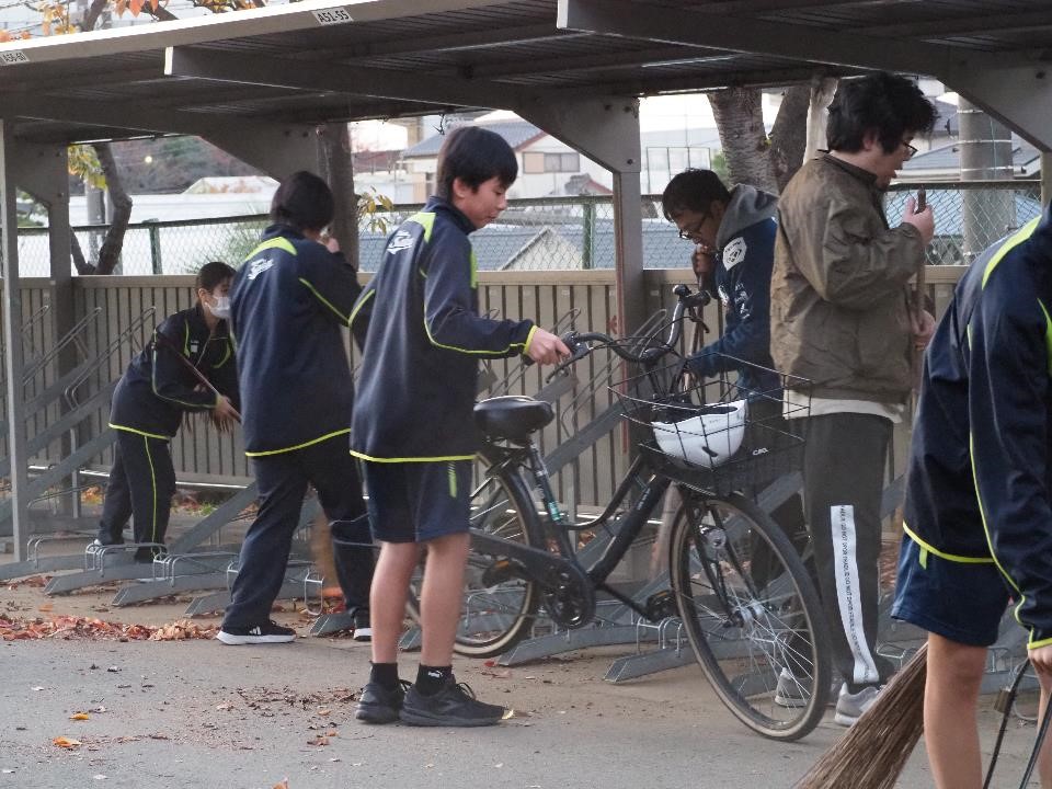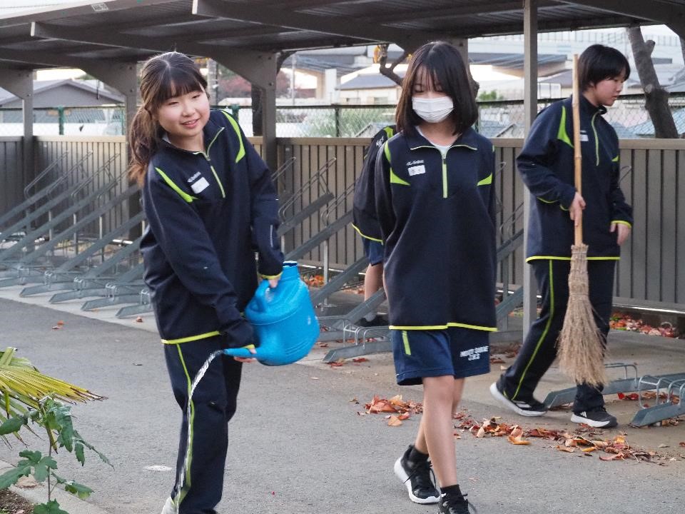 秋の深まり、落ち葉も増えてきたので、ボランティア生徒に落ち葉掃きをしてもらいました。