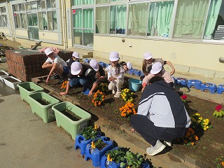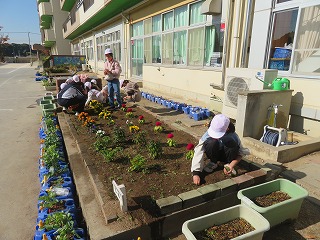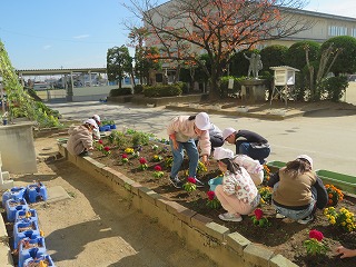 ひだまり学級のみなさんが花壇の手入れをしてくれました。