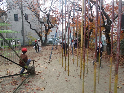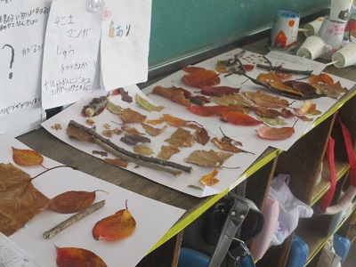 外繋がりで、校庭整備でこの時期、大変なのが落ち葉拾いですが、この落ち葉は生活科や図工の学習に欠かせません。