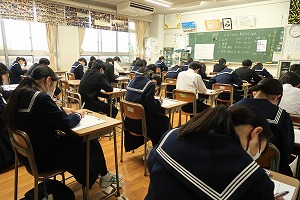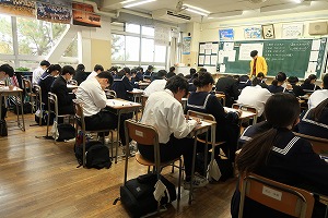 1,2年生ともに必死に考え、解答している姿、どこの教室も緊張感漂う良い雰囲気でした。このような中でのアウトプットが、学力向上には必須です。