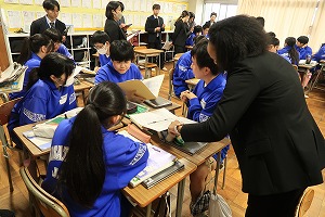 また5時間目には、「英語科教員合同教科会」とういうことで、市内から多くの英語科の先生方が参観にみえました。授業が行われた3年生のクラスでは、本校の学びスタイル=集団学びを活用しながら、仮定法(Ifなど)を使って自分の将来について表現する英作文の作成に取り組んでいました。