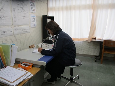 放送を聞いて、速やかに机の下にもぐり、安全を確保するようにできました。