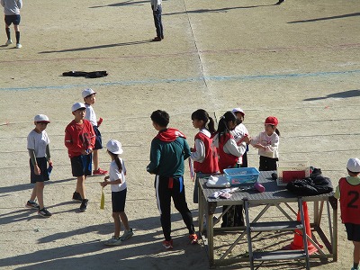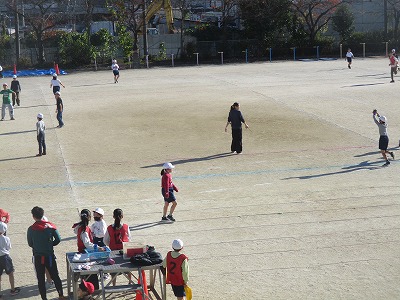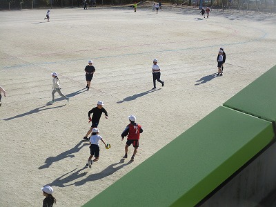 運動委員会が体力向上のために、しっぽとりを企画して3年生と遊びました。