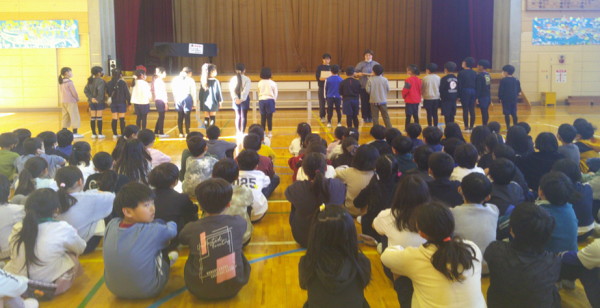 本日の業間休みに学年集会を開き、持久走大会の表彰式を行いました。