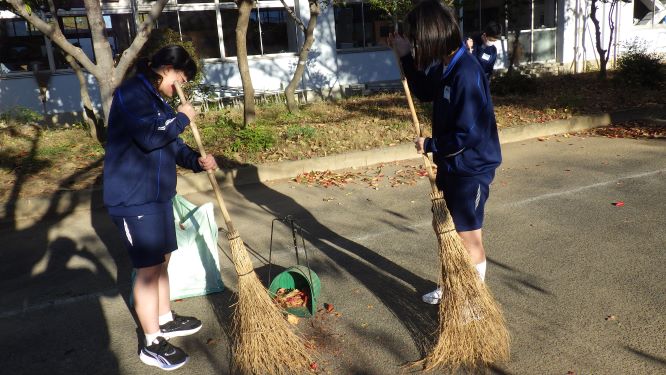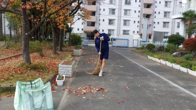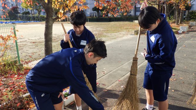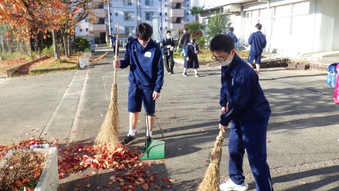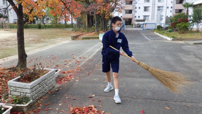 冬が近づき落ち葉がたくさんある中、朝早めに登校して落ち葉を掃いてくれました。ありがとうございます。
