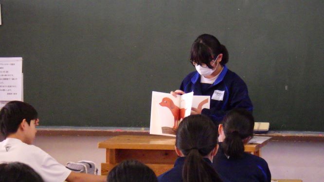 昨日、今日の2日間で図書委員のMさんとOさんが絵本の読み聞かせを行いました。