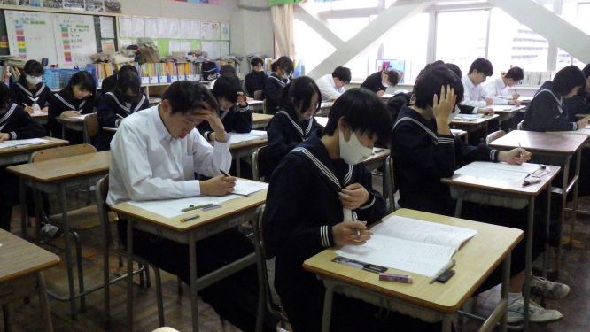 朝の教室にはテストに向けて勉強している人の姿が多くみられました。