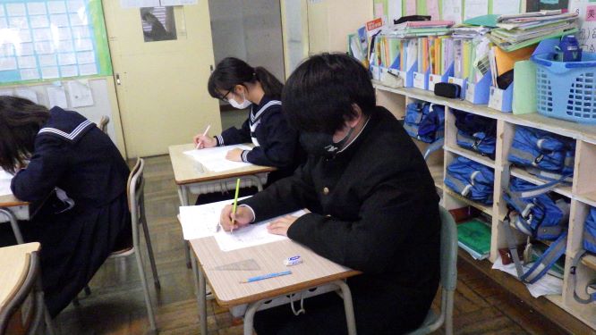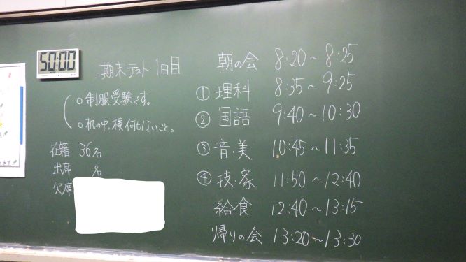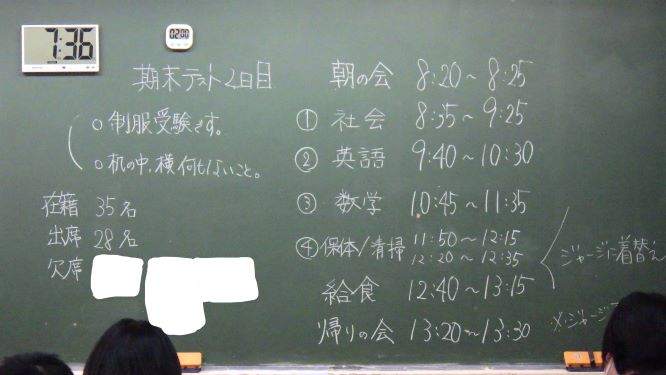期末テスト2日目です。今日は、社会、英語、数学、保体の4教科。