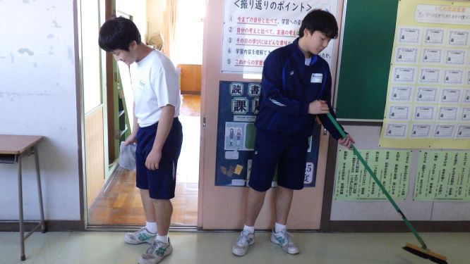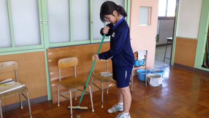 テストが終わると掃除です。テスト後でも、一生懸命掃除しています。