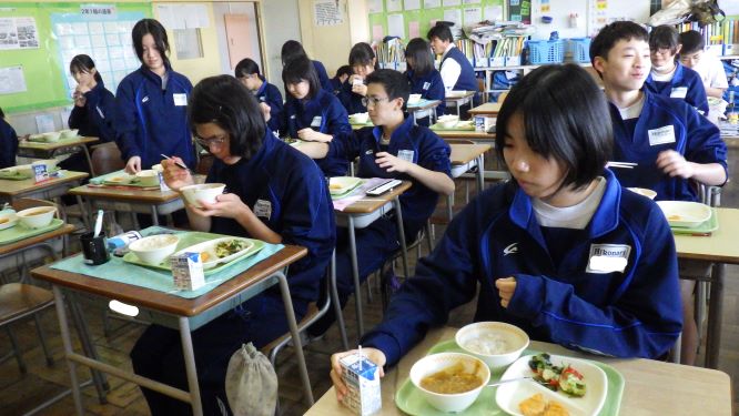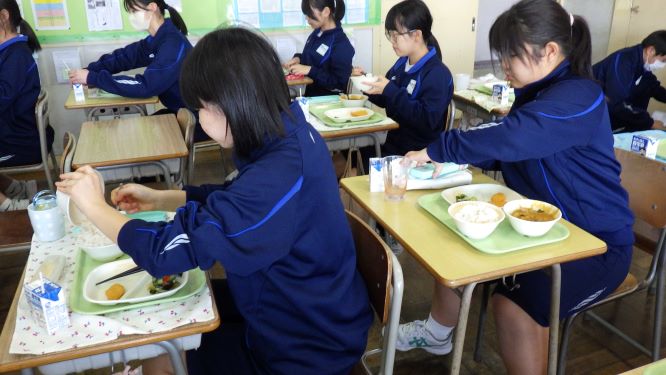 今日の給食はカレー。テストをがんばったからか、いつもよりおいしいですね。