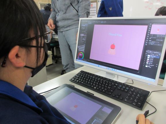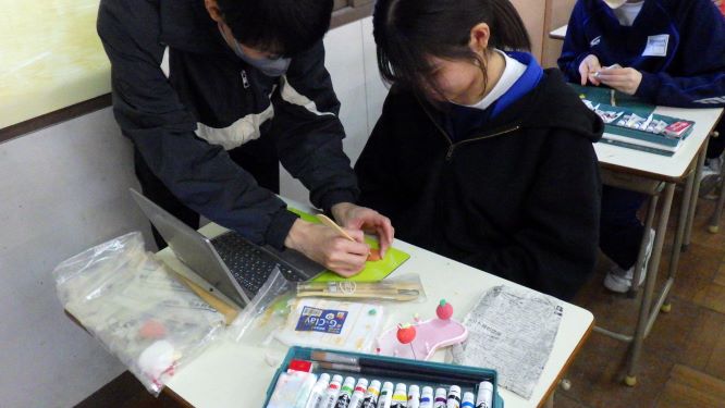 友達と相談したり。感謝の気持ちが伝わるよう一生懸命取り組んでいます。