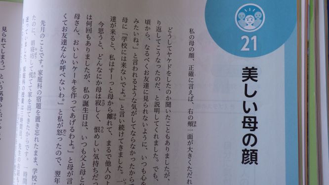 道徳の時間では「美しい母の顔」という題材を読みました。テーマは「家族愛」です。