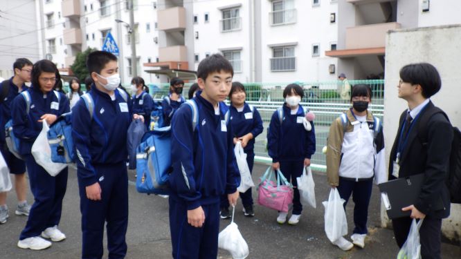 今週から始まった落ち葉掃きボランティア、昨日よりもさらに多くの2年生が参加してくれました。