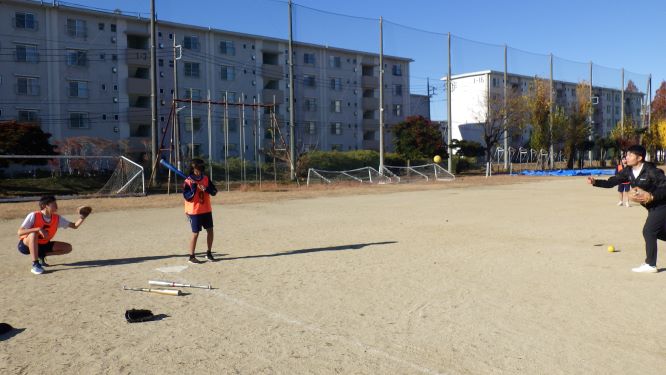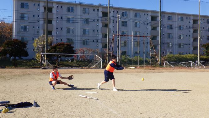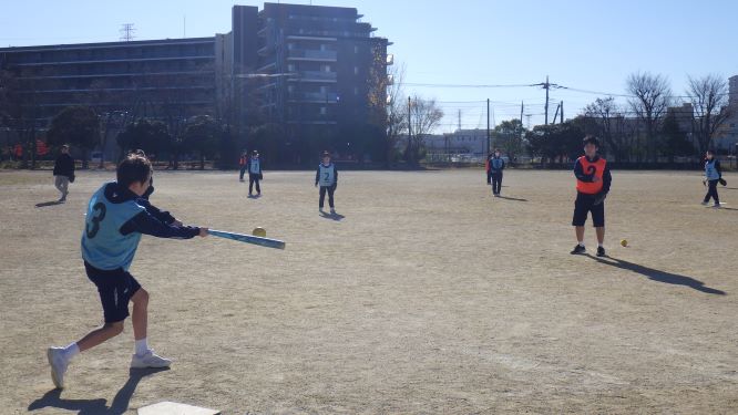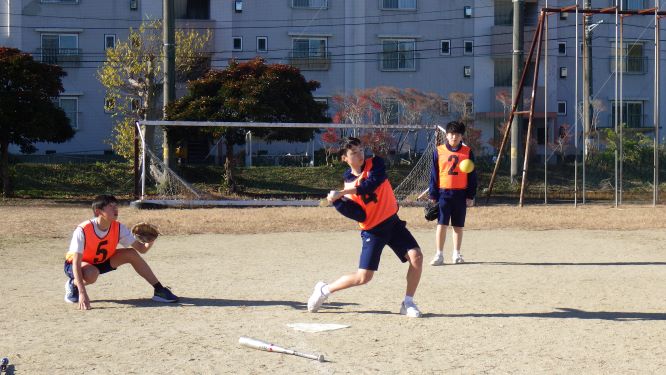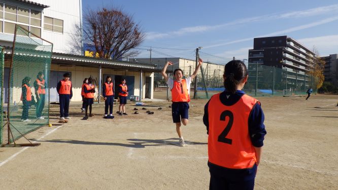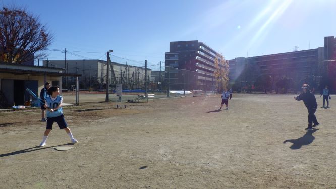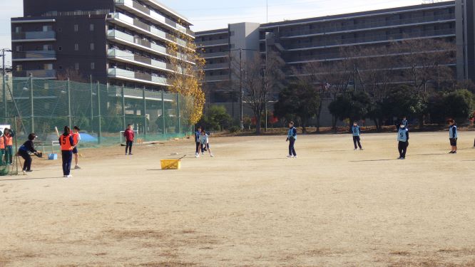 今日は、ここ最近で一番の冷え込みの中、体育の時間にソフトボールを行いました。