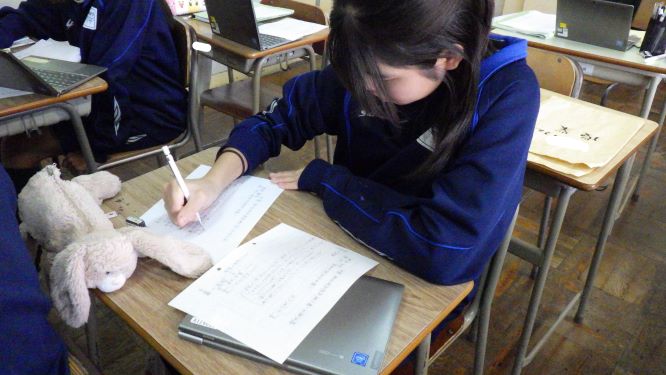 5時間目の時間では、先週行われた三郷工業技術高校まるごと体験のお礼の手紙を書きました。