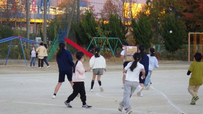 小学生と元気よく遊ぶのに、準備運動は欠かせません。