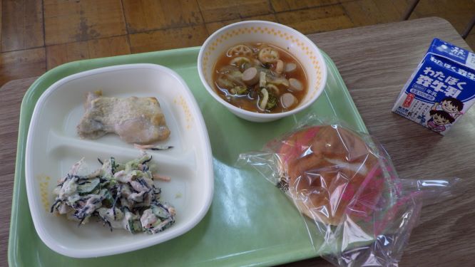今日のメニューは醤油ラーメンに肉まん。中華メニューでした。