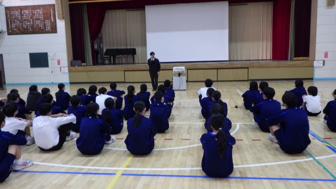 その後、体育館へ避難し、吉川警察署の方からお話をいただきました。