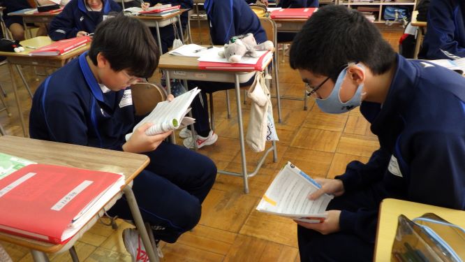 期末テストの返却が始まりました。学力が伸びるのは、テスト後の復習です。仲間の助けを借りながら。