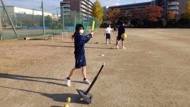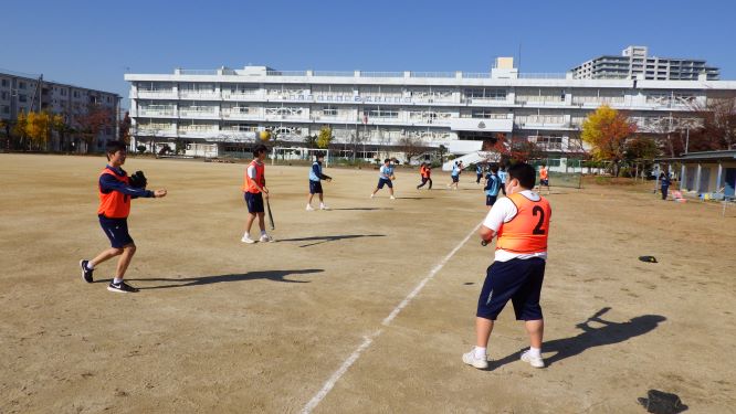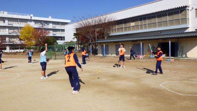 昨日紹介できなかった体育の様子です。選択ソフトボール。