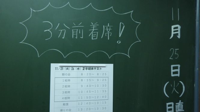 明日から3連休です。でも、連休明けは期末テスト。この週末は勉強最優先で過ごしてください。インフルエンザなどに感染しないよう、人ごみも避けましょう。よい連休になりますように。