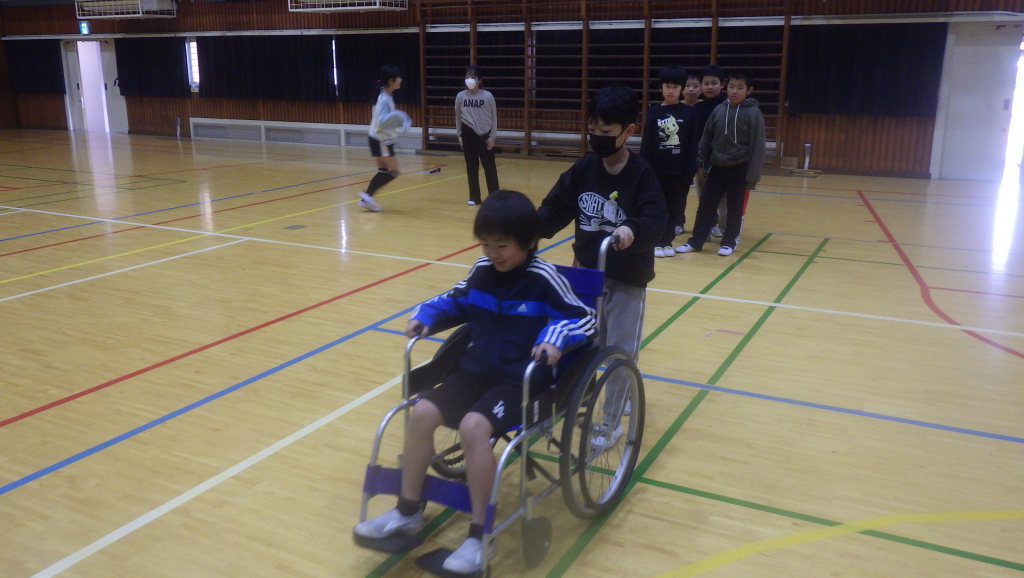 社会福祉協議会の方を招き「白杖・車いす体験」をしました。