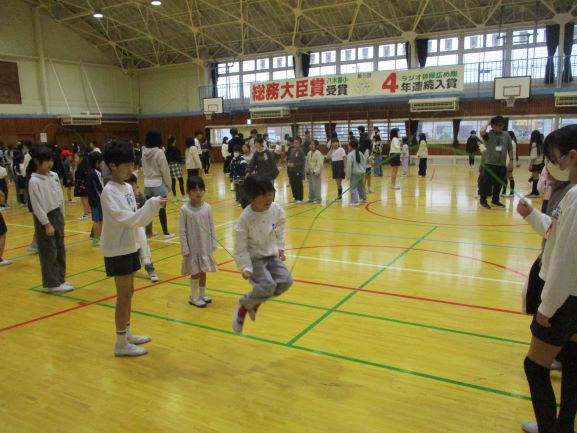 今日のなかよしタイムは八の字跳びの記録会でした。