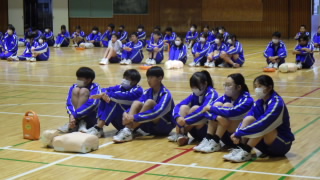 4校時、体育館にて救命講習(心肺蘇生他)を行いました。「いざ」という時のために、この講習で学んだことを実践できるようになってほしいと思います。