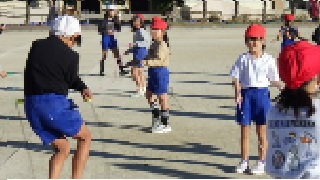 校内なわとび大会に向けて、児童が練習を始めています。今日は、なりスポの時間に6年生による短なわの技の紹介がありました。1~5年生は6年生から跳び方を教えてもらいながら練習しました。さすが6年生ですね。