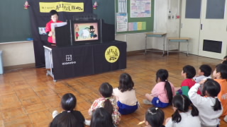 昨年度も来ていただきました、講談社「全国訪問おはなし隊」のキャラバンカーが来校しました。講談社の方に、紙芝居や絵本の読み聞かせをしていただいたり、キャラバンカーから読みたい本を自由に読んだりと素敵な時間となりました。1・2年生はとても楽しそうでした。今日の体験をきっかけにもっと読書が大好きになれたらいいですね。