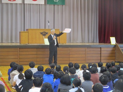 2学期最後の全校朝会では、私が欲張ってしまい2つの内容のお話をしました。