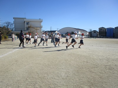 校庭に目を向けると、4年2組の学級閉鎖で延期になっていた第4学年の校内持久走大会が開催されていました。保護者の皆さんも応援に駆けつけてくださって、子供たちにも気合が入ります。