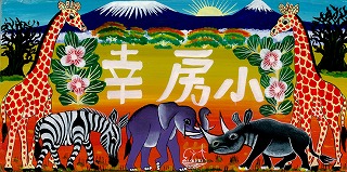 現地のアーティストの方が、幸房小のために特別に描いてくださったそうです。カラフルな素敵な作品ですね。