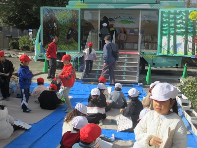 この事業は、特注で製作された2台のキャラバンカーに550冊以上の絵本を載せて全国におはなしを届ける、子供たちを対象とした読書推進活動です。