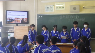 本日5校時、先日行われた東京班別行動(12月5日実施)の成果についての発表会を第2学年保護者授業参観(+保護者会)に合わせて公開いたしました。