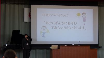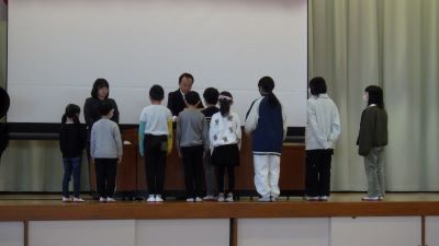 今日から第3学期がスタートしました。始業式では校長先生から漢字「坂」をテーマに、「苦しい時こそ上り坂」の気持ちで、目標を持って少しずつ成長していこうとお話がありました。また、1月の生活目標のお話や、代表児童3名による3学期に向けた発表、様々なコンクール等で活躍した児童の表彰など、盛りだくさんの内容でした。