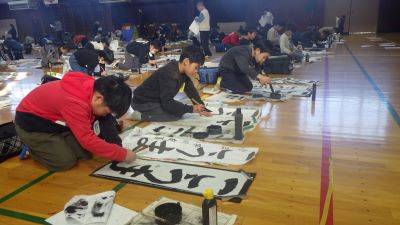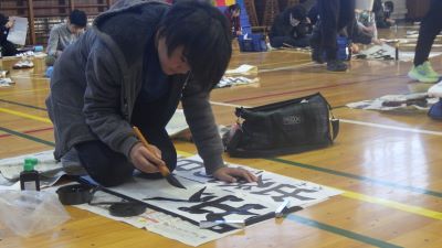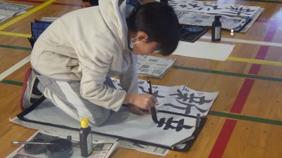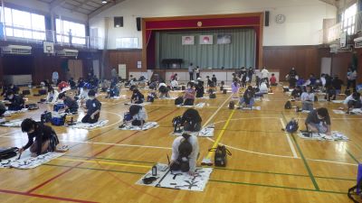 1月13,14日の2日間、校内書初め競書会が行われました。1,2年生はフェルトペンを使って、3年生以上は毛筆で行います。3年生以上は体育館で13日は中学年、14日は高学年が実施しました。子供たちは一筆一筆、よい作品を書こうと集中して取り組んでいました。