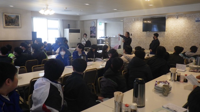 ホテルの方からのお話です。みんなよくお話を聞いています。