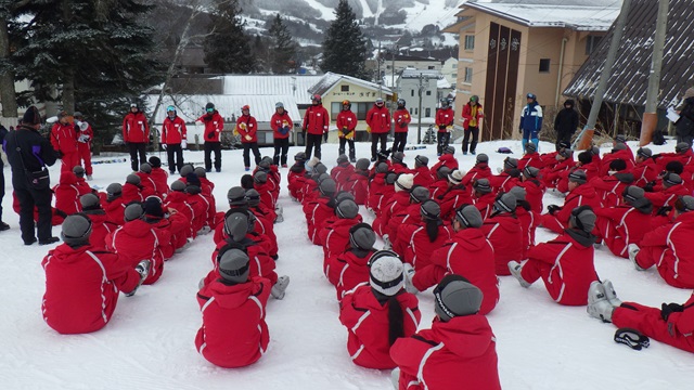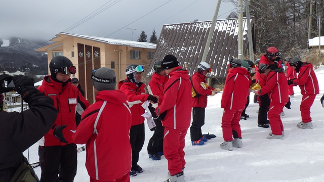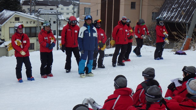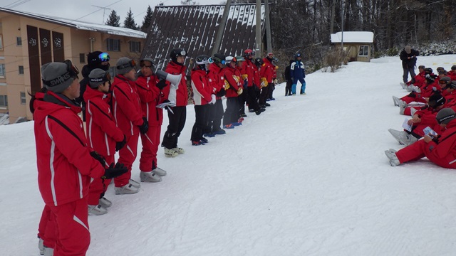 スキー学校の校長先生からお話をいただき、修了証を授与していただきました。