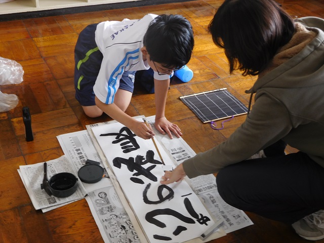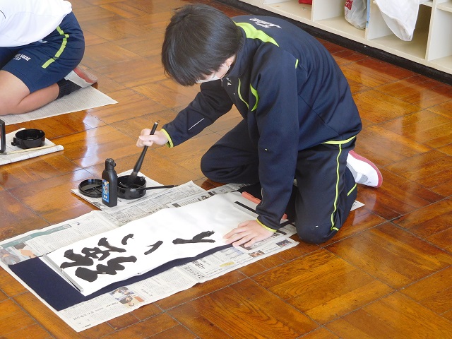 国語の先生にご指導いただいている授業で、書き初めに取り組みました。立派な作品がたくさん仕上がりました!!
