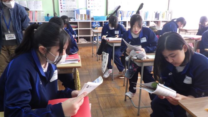 図書委員会の1年生が緊張しながら読み聞かせをしてくれました。彼女を見守る3年生の心はあったかい。
