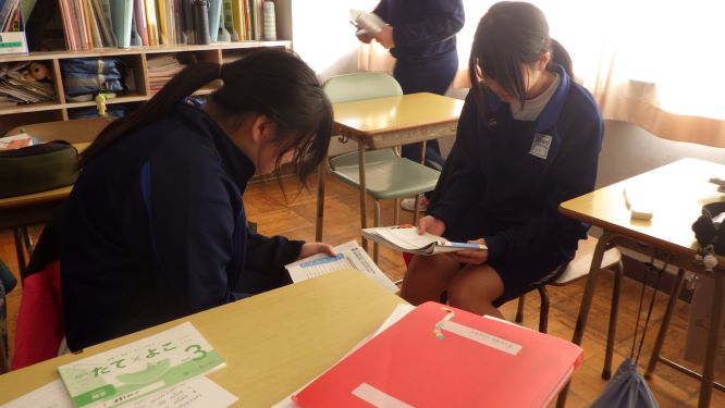 英語は基本文で声出しをした後、「はっきりした声で音読ができる」の目標を達成すべく、音読練習を中心に行いました。