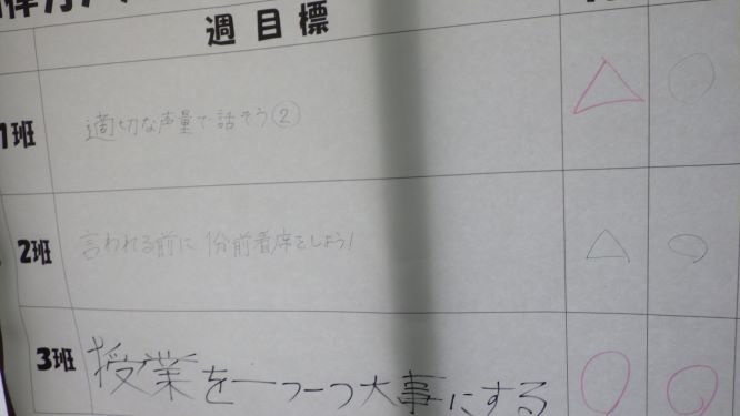 学級委員会の「自律力アップキャンペーン」の1週目が終わりました。どちらのクラスも好成績です。