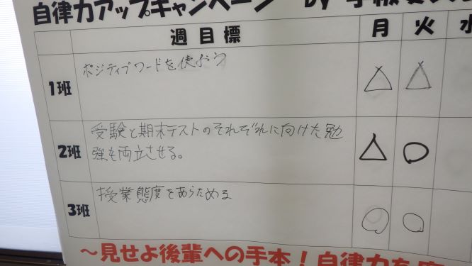 今日から「自律力アップキャンペーン」がスタートです。見せよ後輩への手本!