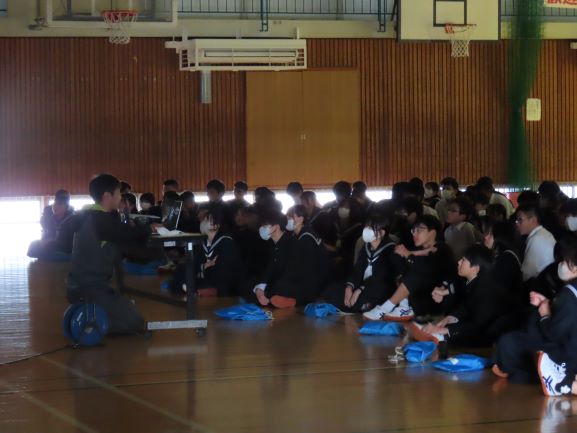 昨日、1年生ではスキー教室のまとめ集会を体育館で行いました。